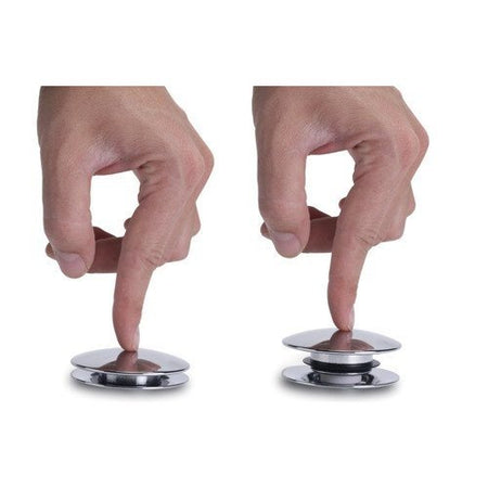 - Pirmasis kištuko paspaudimas uždaro drenažą, antrasis atidaro nutekėjimą.