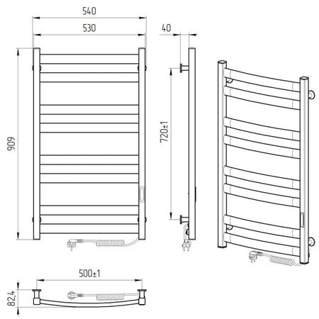 Šildomo paviršiaus temperatūra min-36°C / vidutinė-45°C / max-55°C (+-10%)