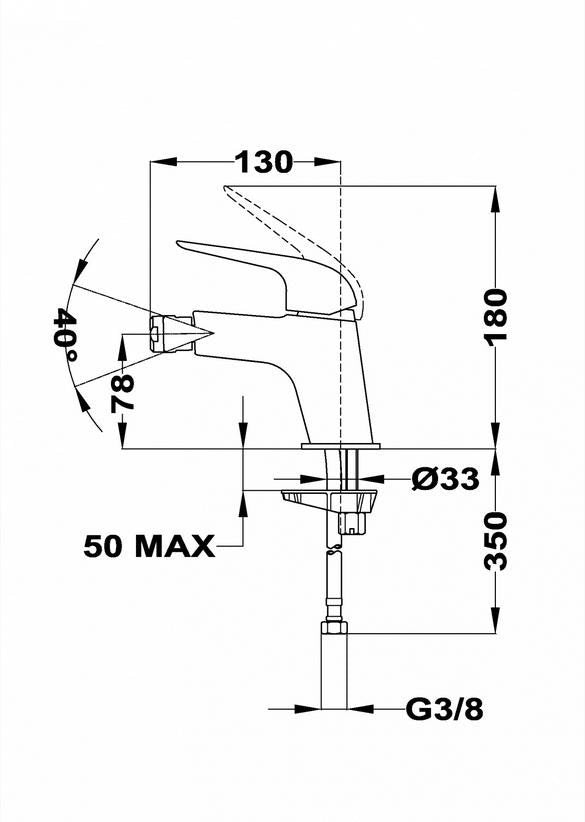 - Plačiai reguliuojamas vandens srovės pasvyrimo kampas (iki 40 laipsnių)