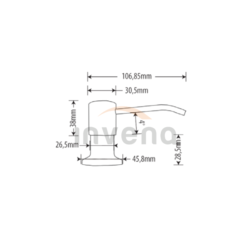 Į plautuvę ar stalviršį montuojamas dozatorius yra puikus pasirinkimas naudojant indų ploviklį ar skystą muilą. Dozatorius yra praktiškas bet kurios virtuvės priedas. Patogus papildymas (tiesiog nuimant dozatoriaus dangtelį) padidina naudojimosi komfortą. Dozatoriaus galvutė pagaminta iš aukštos kokybės nerūdijančio plieno. Tvirtas polietileno indas. Galima montuoti į 38mm stalviršį.