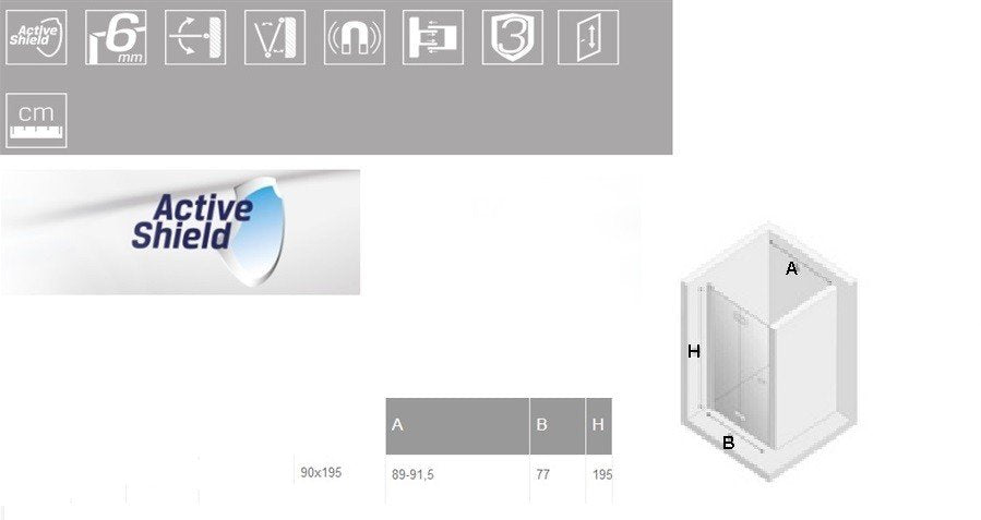 Dušo durys NEW SOLEO BLACK 90cm, kairė