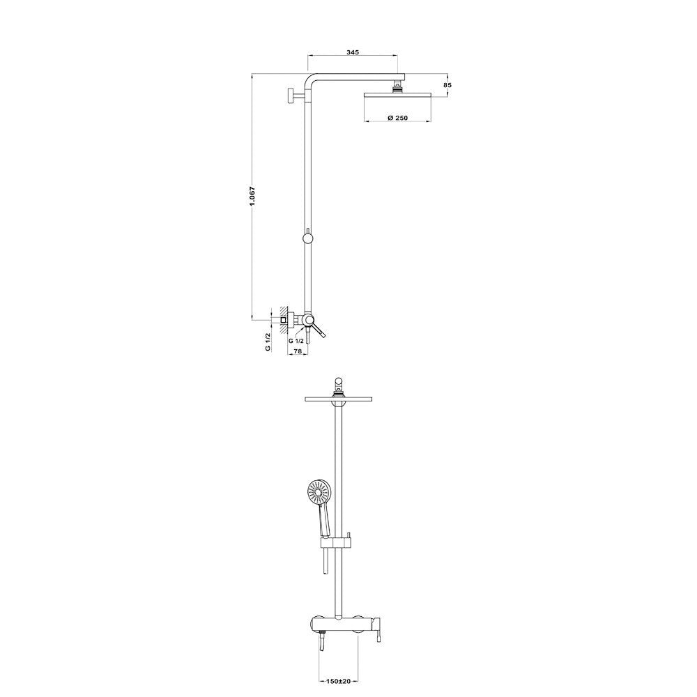 - Stacionari apvali antikalkinė dušo galva 250 mm