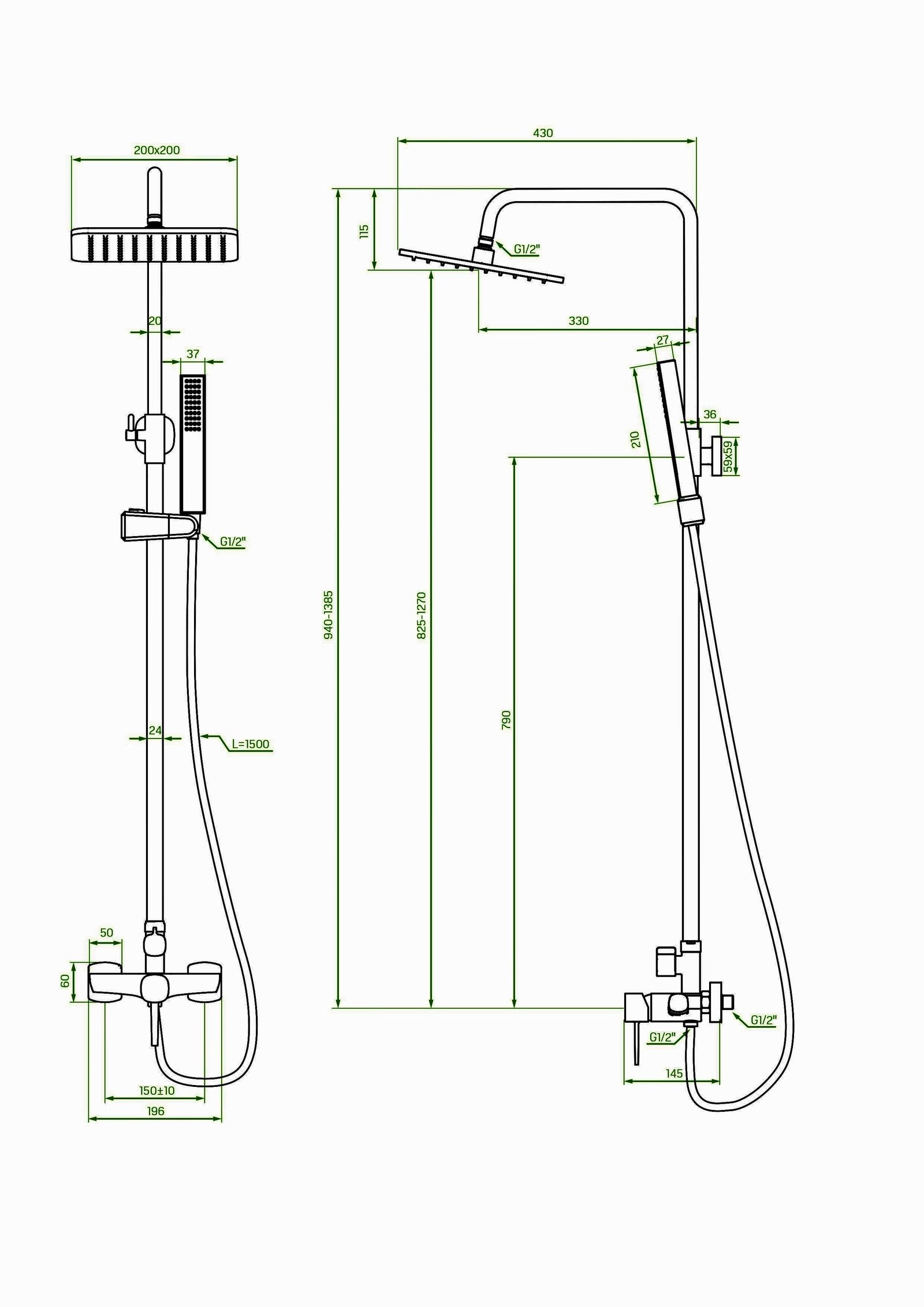 - Stacionarios dušo galvos matmenys: 200x200mm