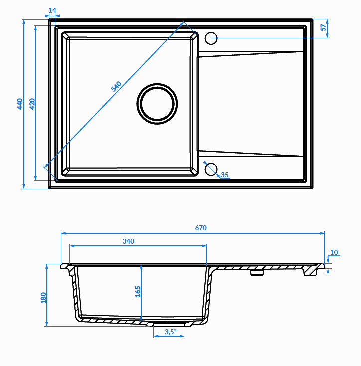 Paprasta forma ir minimalistinė kriauklės forma puikiai dera prie modernaus ir klasikinio interjero. Beveik plokščias kanalizacijos vamzdis leidžia lengviau išlaikyti kriauklę švarią, o apvadas neleidžia vandeniui išsilieti ant virtuvės stalviršio. Erdvus dubuo leidžia lengvai atlikti kasdienę veiklą. Unikalios granito, iš kurio pagamintas Hunter, savybės garantuoja aukštą atsparumą spalvos pasikeitimui, braižymui, smūgiams, taip pat aukštai temperatūrai ir šiluminiam smūgiui.