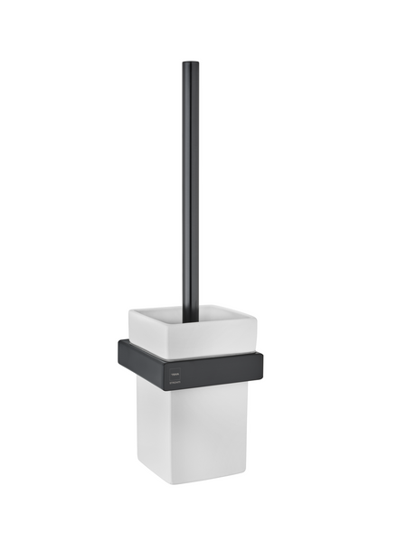 Keraminis indas su šepečiu, juodos spalvos laikikliai