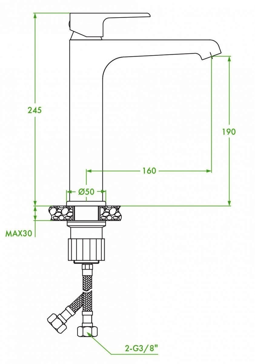 LAVEO LARGO 105 B-CH - aukštas, svirtinis vandens maišytuvas praustuvui.