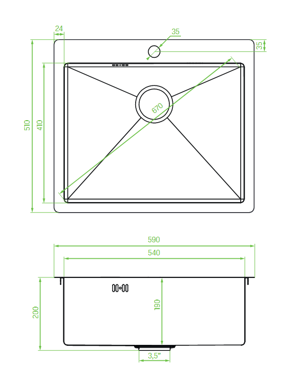 LAVEO MARMARA 1B GOLD - įleidžiama nerūdijančio plieno plautuvė, padengta titanu