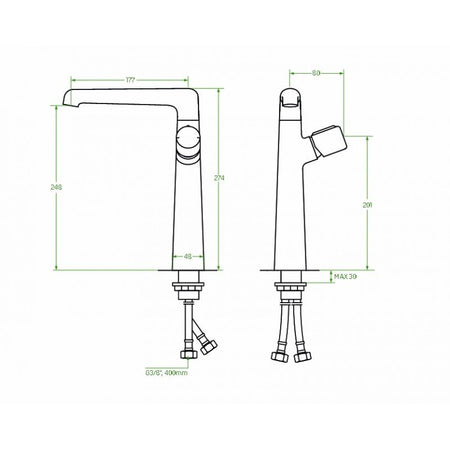 - Lietu, sukiojamu čiaupu: 17,7cm