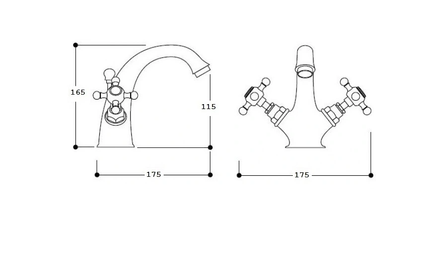 STILO 100 CH – dviejų rankenėlių, retro stiliaus praustuvo maišytuvas.