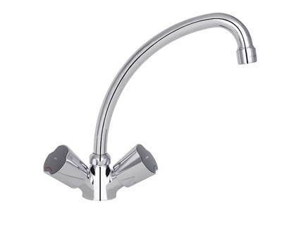 TEKA METALICA 105 - aukštas, dviejų rankenėlių praustuvo maišytuvas, lenktu čiaupu, padengtas atsparia chromo danga.