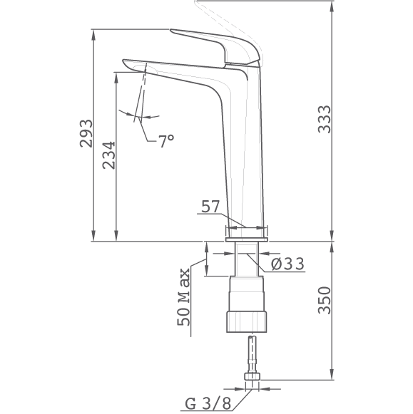 TEKA TAKA 105 B – modernus, paaukštintas, svirtinis praustuvo maišytuvas.