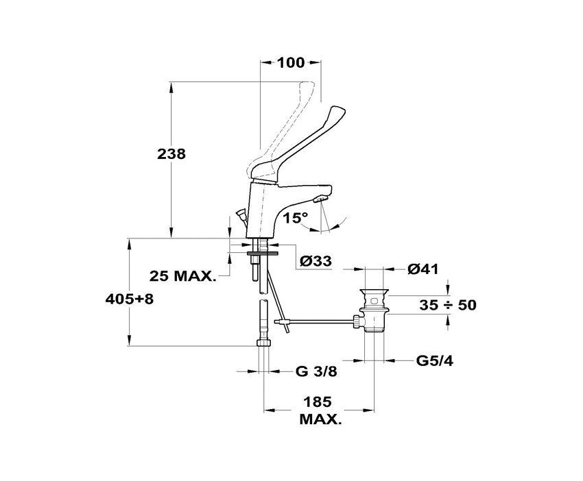 TEKA MED 100 – medicininis praustuvo maišytuvas, lietu čiaupu, padengtas atsparia chromo danga.
