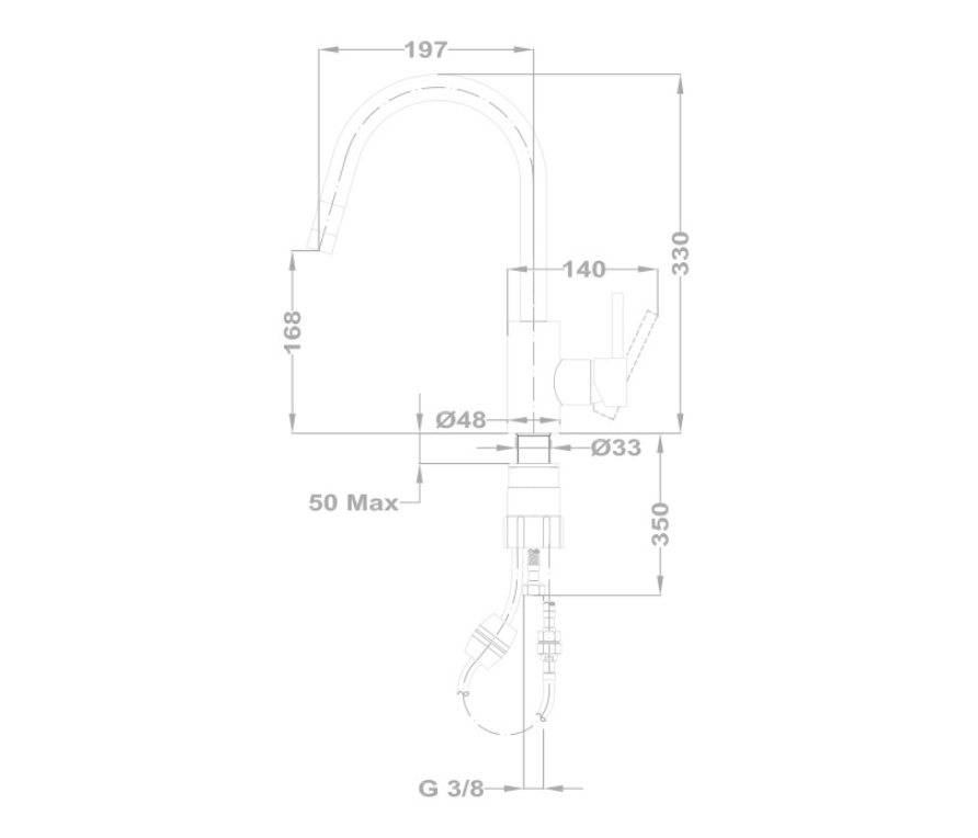 - Ištraukiamos žarnelės ilgis - 150 cm