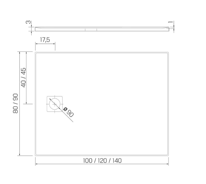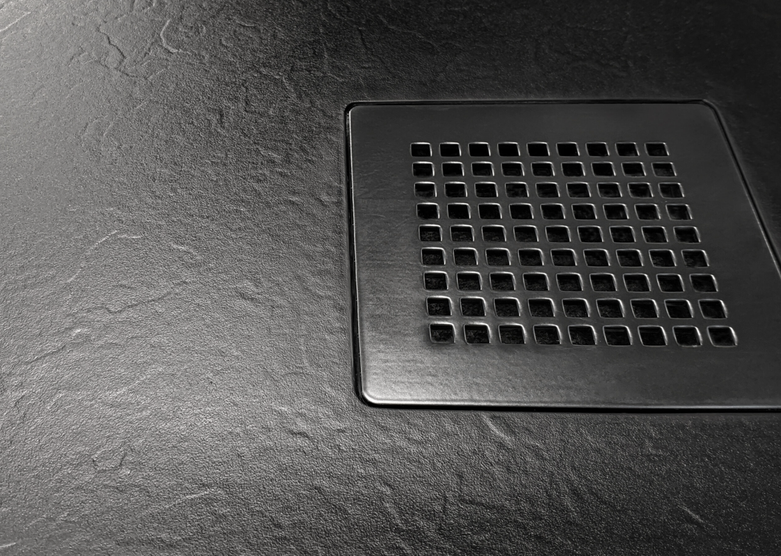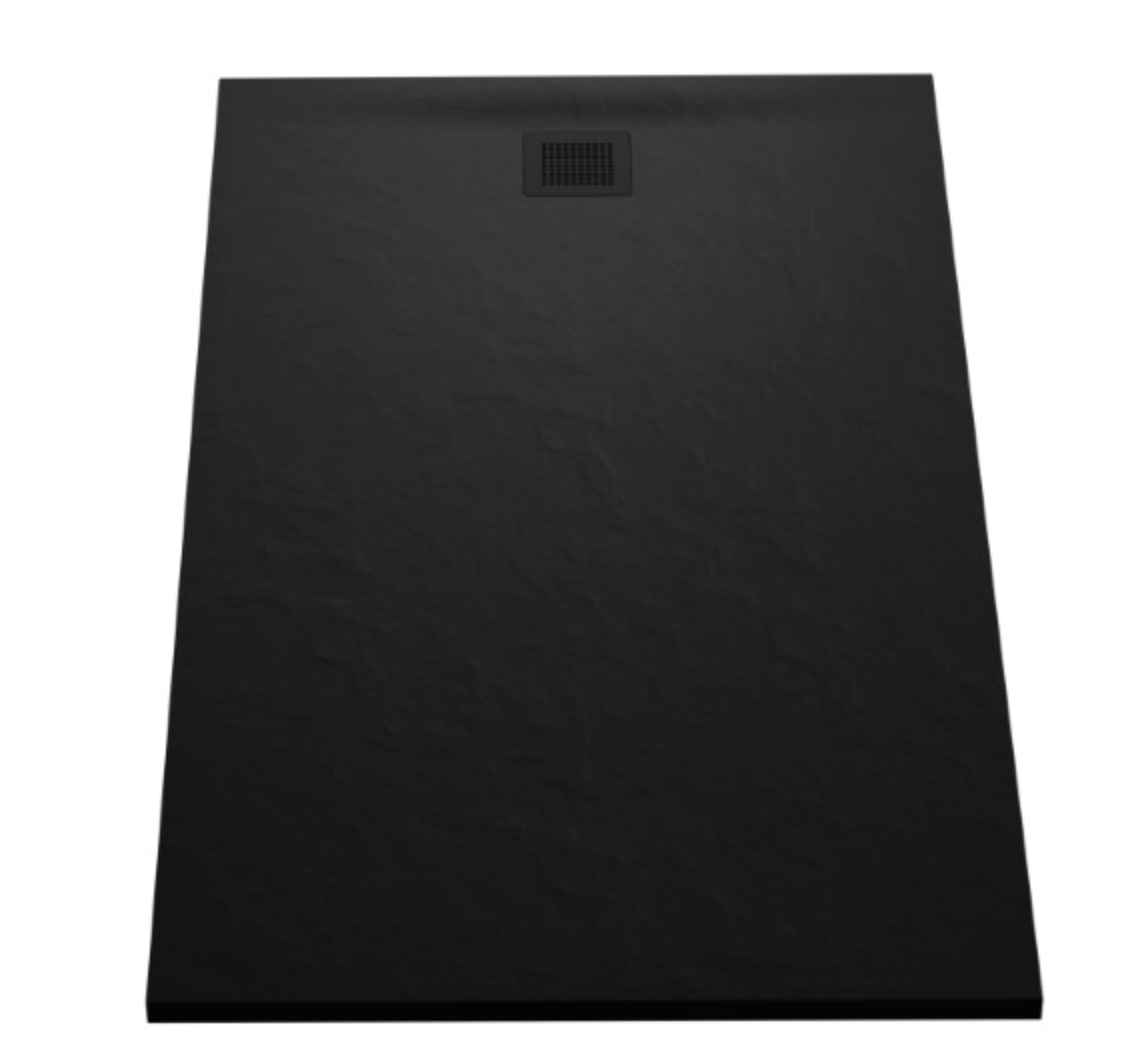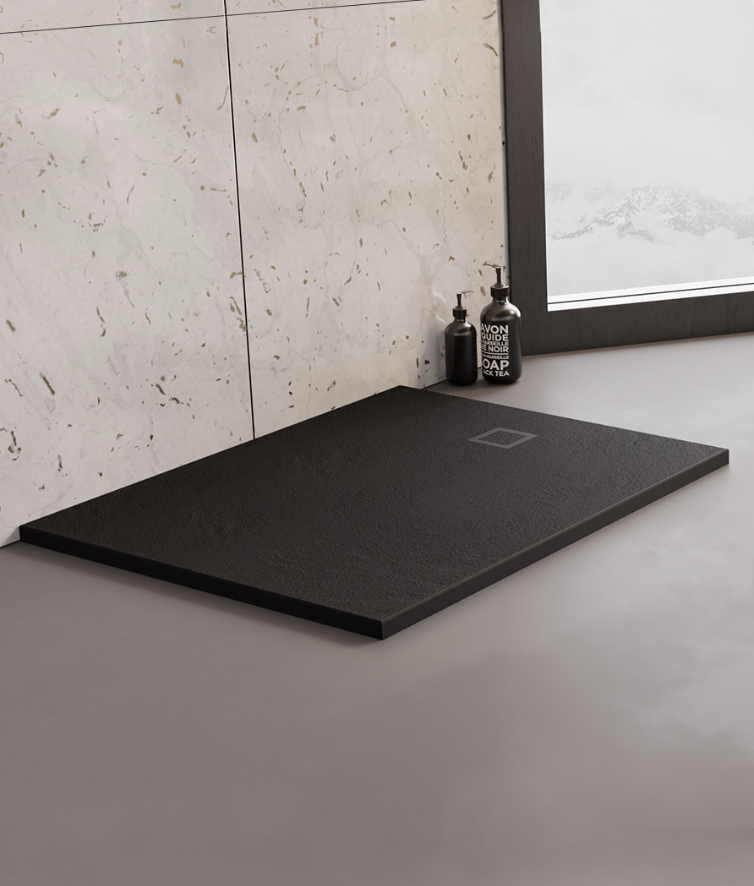 Mori konglomerato dušo padėklas su natūralaus akmens struktūra, juodas, aukštis 3 cm, stačiakampis