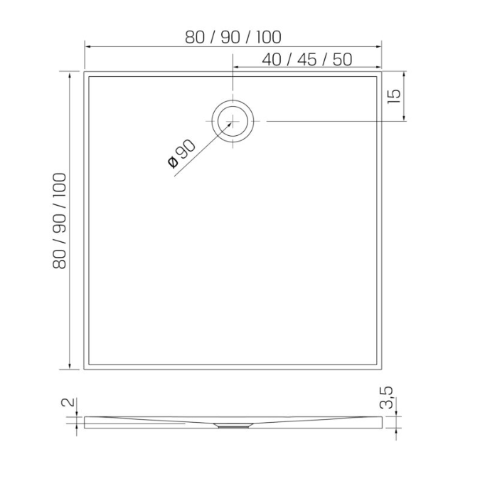 Nex konglomerato dušo padėklas, kvadratinis, baltas, aukštis 3,5 cm