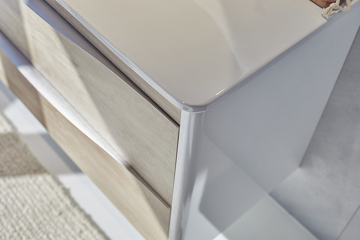 - Spalva: priekinė panelė - ąžuolas, šonai - blizgūs balti