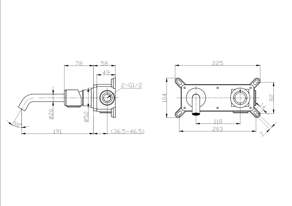 LAVEO PETO 305 B - vandens maišytuvas praustuvui, montuojamas sienoje.