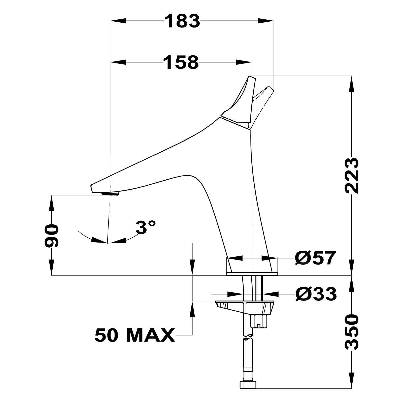 - Gylis: 183mm;
