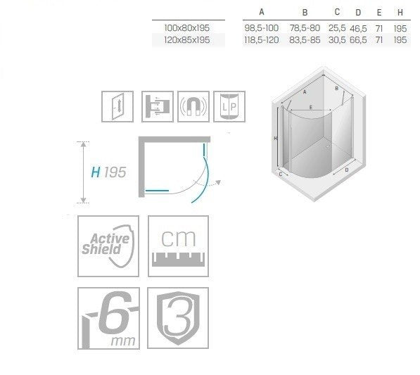 Pusapvalė dušo kabina NEW SOLEO, 1 durys