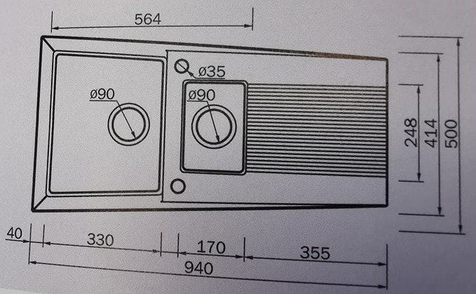 - Komplektacija: plautuvė, sifonas, ekscentrinis 3 ½ ventilis, tvirtinimo elementai
