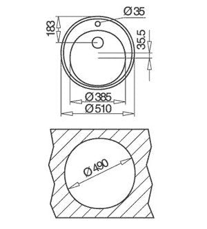 - Dubens matmenys: Ø385 mm, 184 mm gylis