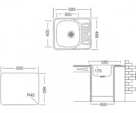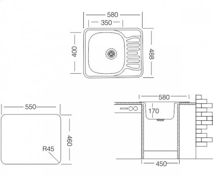 - Išorės matmenys:580x488x170mm