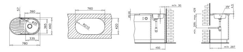 TEKA DR-78 1B 1D - lininė, nerūdijančio plieno plautuvė.