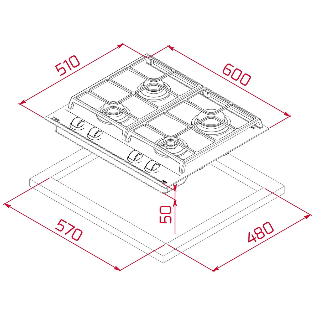 - Automatinis uždegimas kiekviename degiklyje, įjungiamas valdymo rankenėlėmis