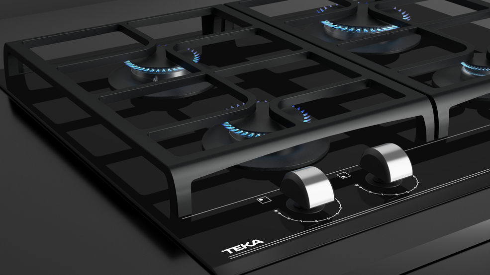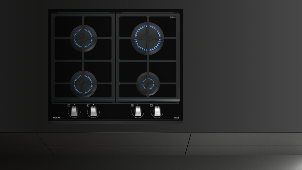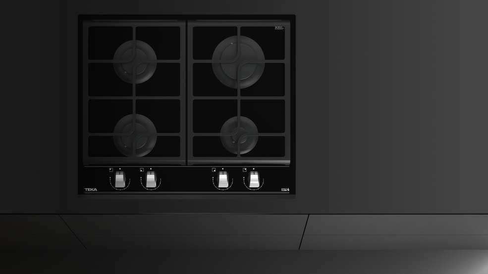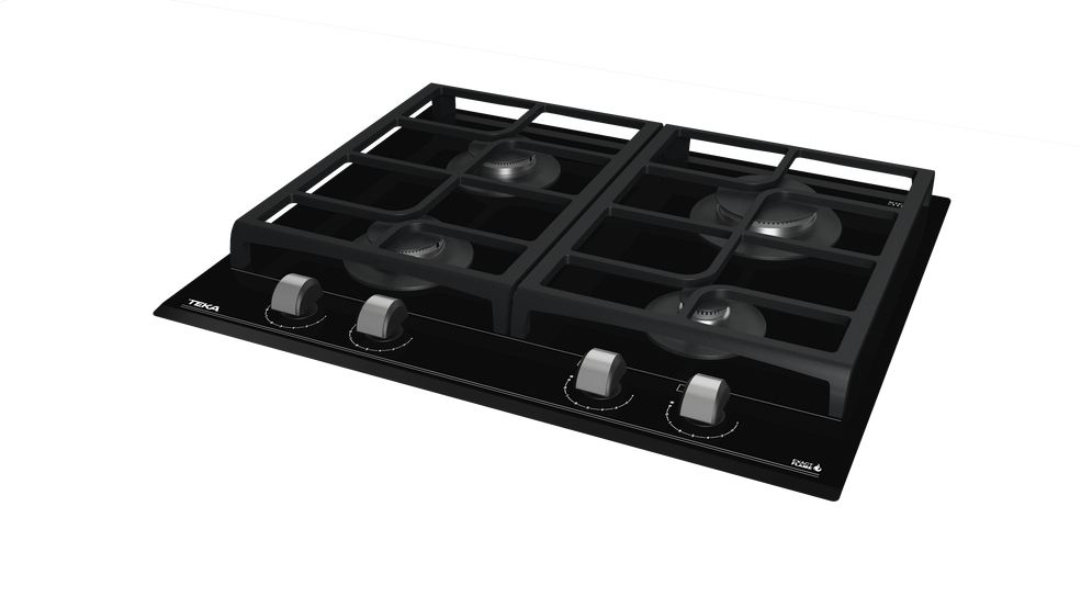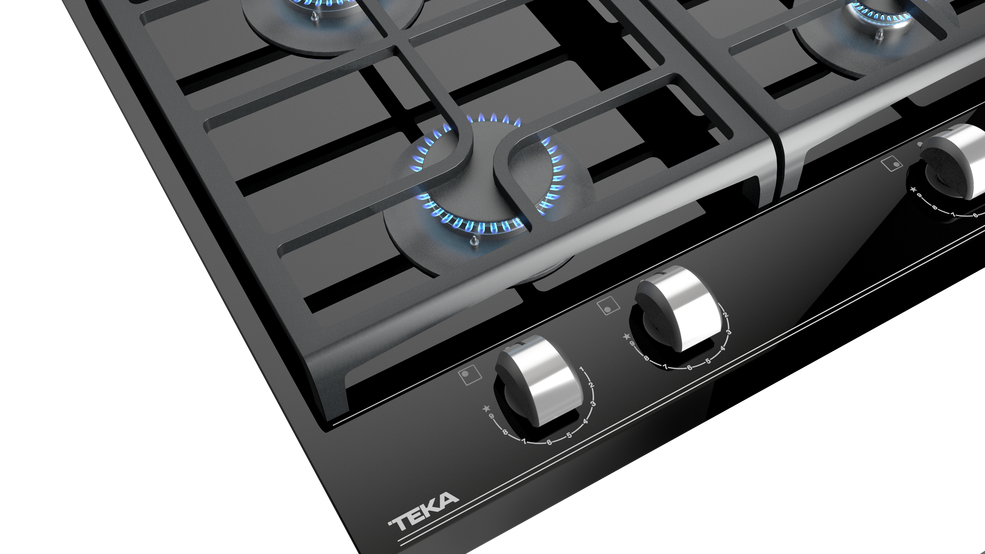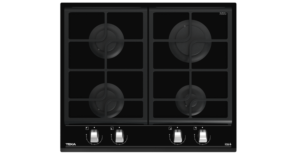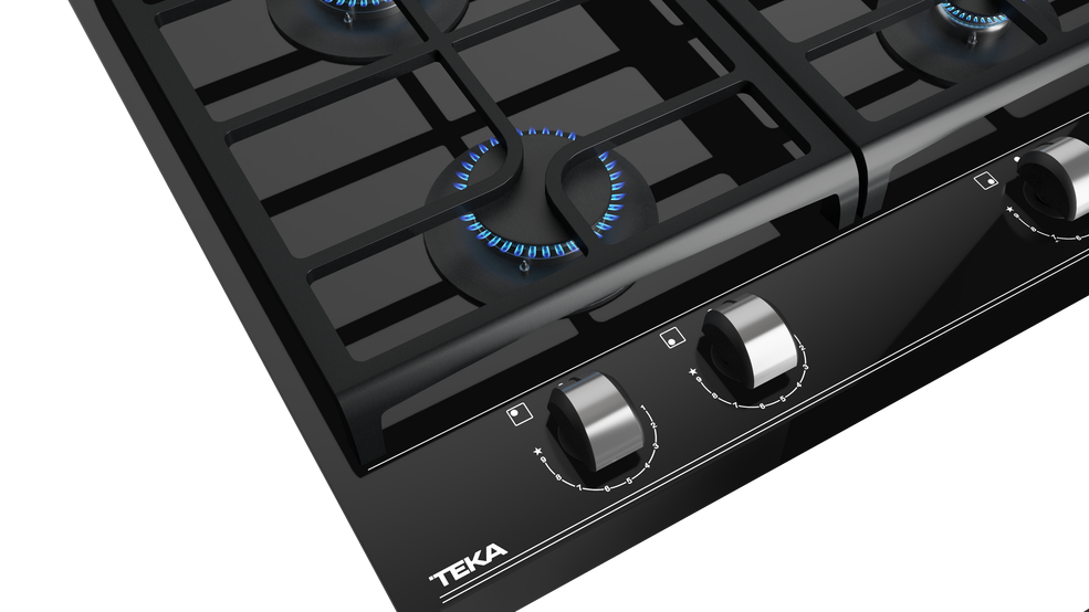 TEKA GZC 64320 – nepriklausoma, juodos spalvos grūdinto stiklo, dujinė kaitlentė.