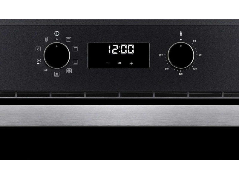 - Orkaitės fasadinis paviršius iš juodo stiklo. Elegantiška nerūdijančio plieno rankena, padengta specialia danga, apsaugančia nuo pirštų antspaudų.
