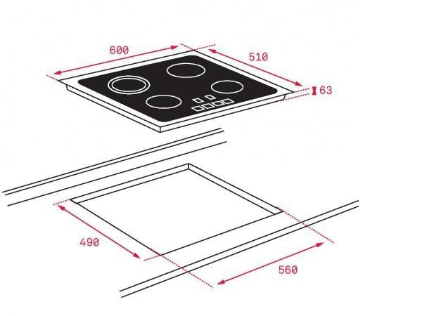 - Dizainas: šlifuoto stiklo kaitlentės priekinis kraštas, juodos spalvos stiklokeramika