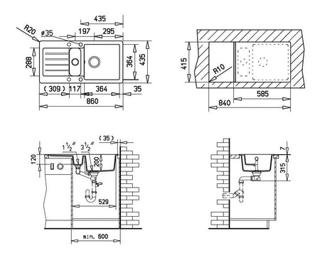 - Komplektacija: plautuvė + sifonas + 3 ½ ekscentrinis ventilis