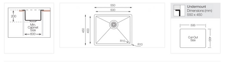 - Dubens išmatavimai: 500x400mm