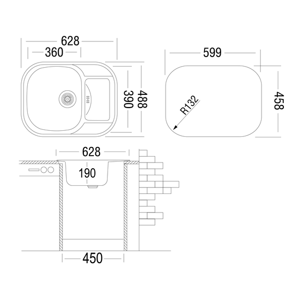 - Išorės matmenys:628x488x170mm