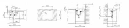 - Dubens matmenys: 1x340x400x155 mm, 1x170x320x95