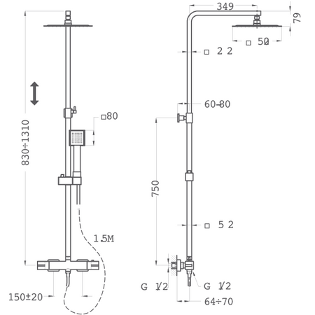 - Termostatinis dušo maišytuvas su saugios temperatūros viršijimo ribojimu (38 laipsniai)