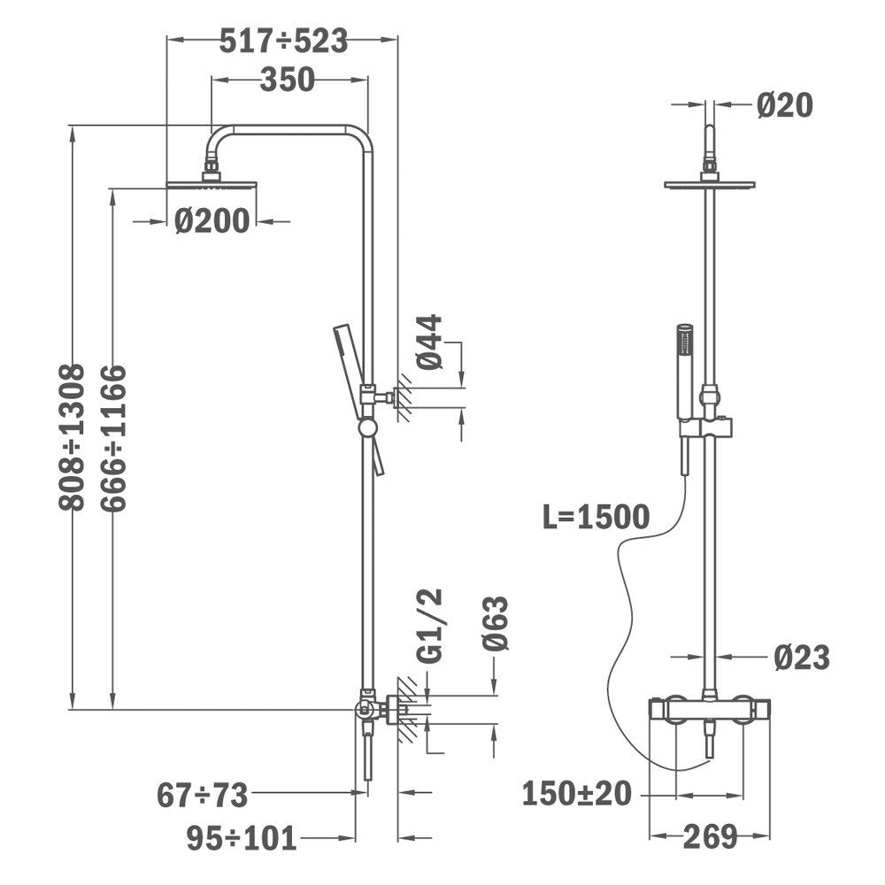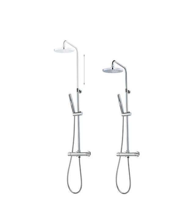 - Apvalus, reguliuojamas teleskopinis dušo galvos laikiklis:
