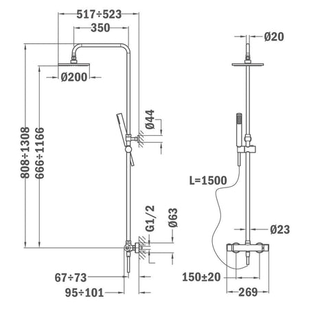 Termostatinė dušo sistema MT PLIUS 402 TDS