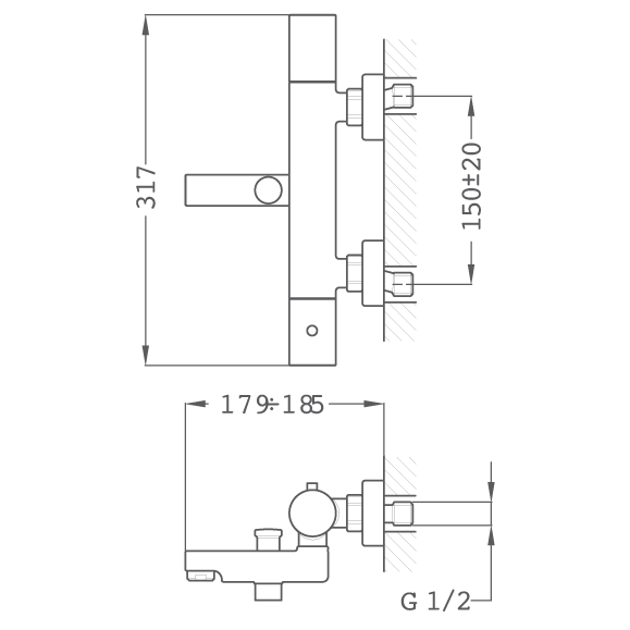 TEKA COR 202K T – termostatinis vonios/dušo maišytuvas.
