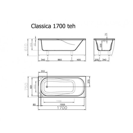 CLASSICA 170 vonios, baltos spalvos fasadinis skydas, skirtas vonios dubens uždengimui iš fasadinės pusės