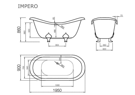 Akmens masės vonia Impero 1950 mm ilgio, be kojų ir be sifono