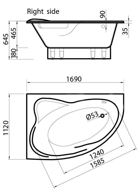 Akmens masės vonia Orte right 1700 mm ilgio, be sifono