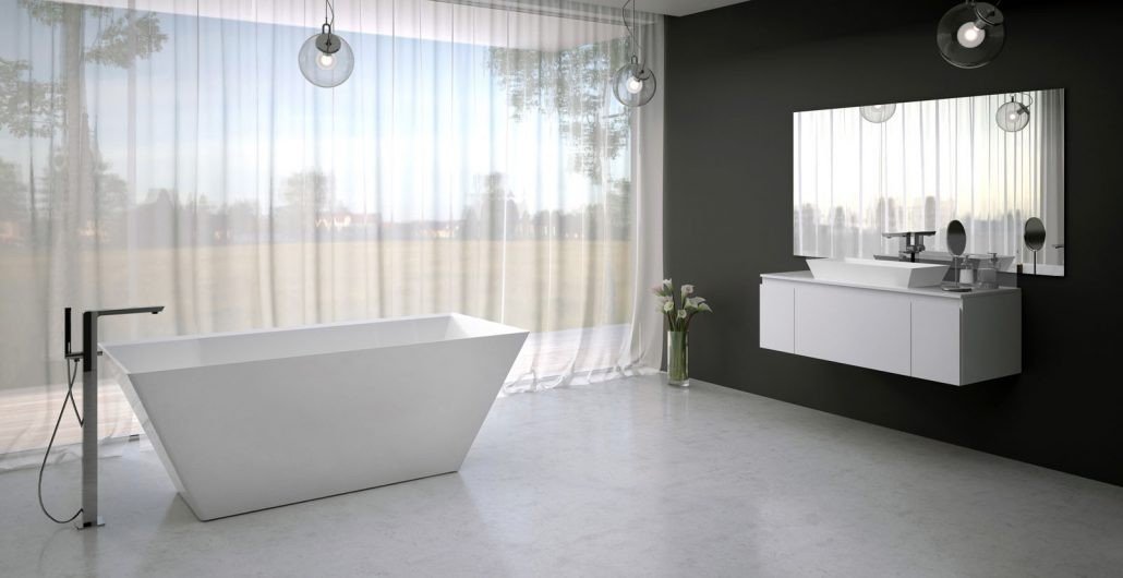 Akmens masės vonia Quadro 175 1752 mm ilgio, su automatiniu sifonu