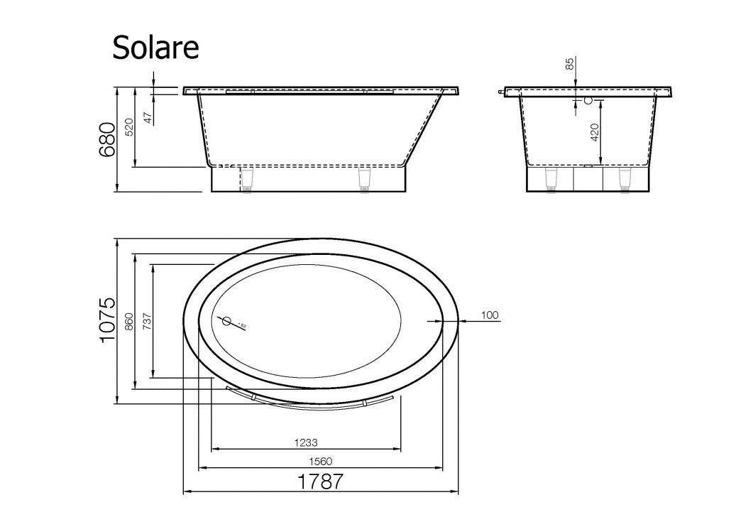 Akmens masės vonia Solare 1787 mm ilgio, be sifono