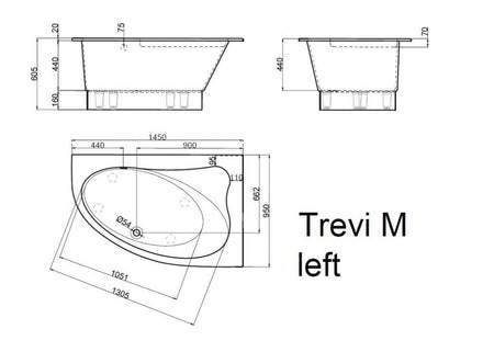 Akmens masės vonia TREVI M LEFT 1450 mm ilgio