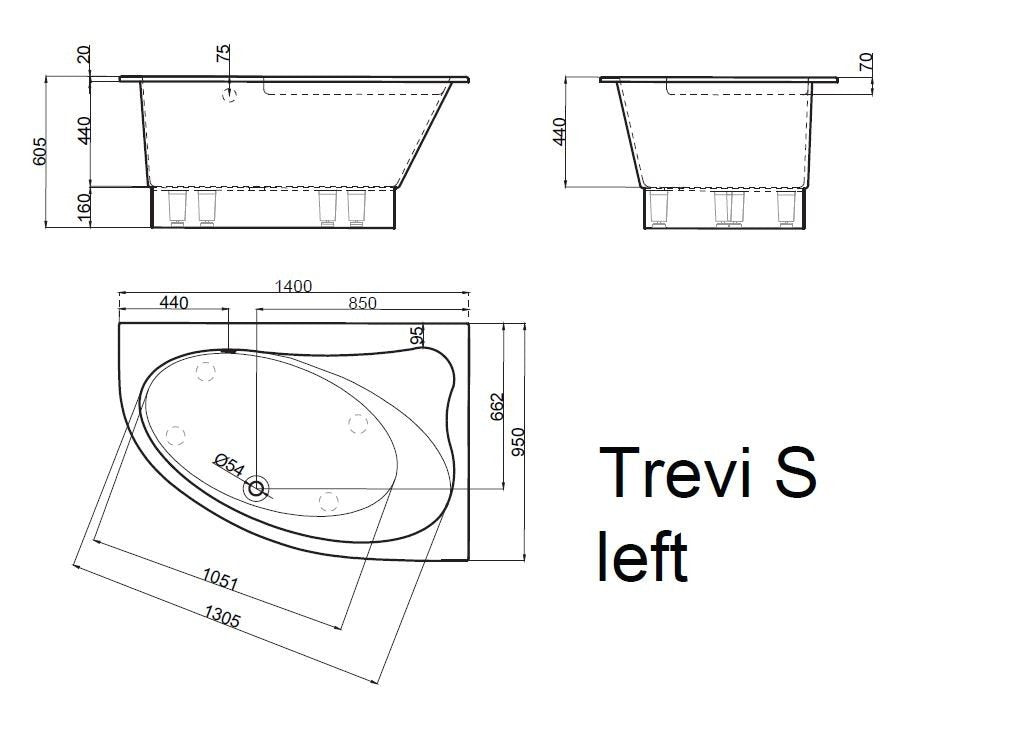 Akmens masės vonia TREVI S LEFT, 1400 mm ilgio, be sifono