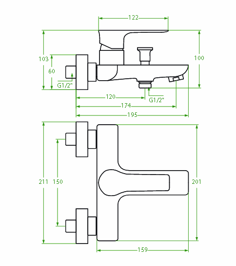 Vonios/dušo maišytuvas LAVEO RAILA 202K W/CH, be dušo komplekto